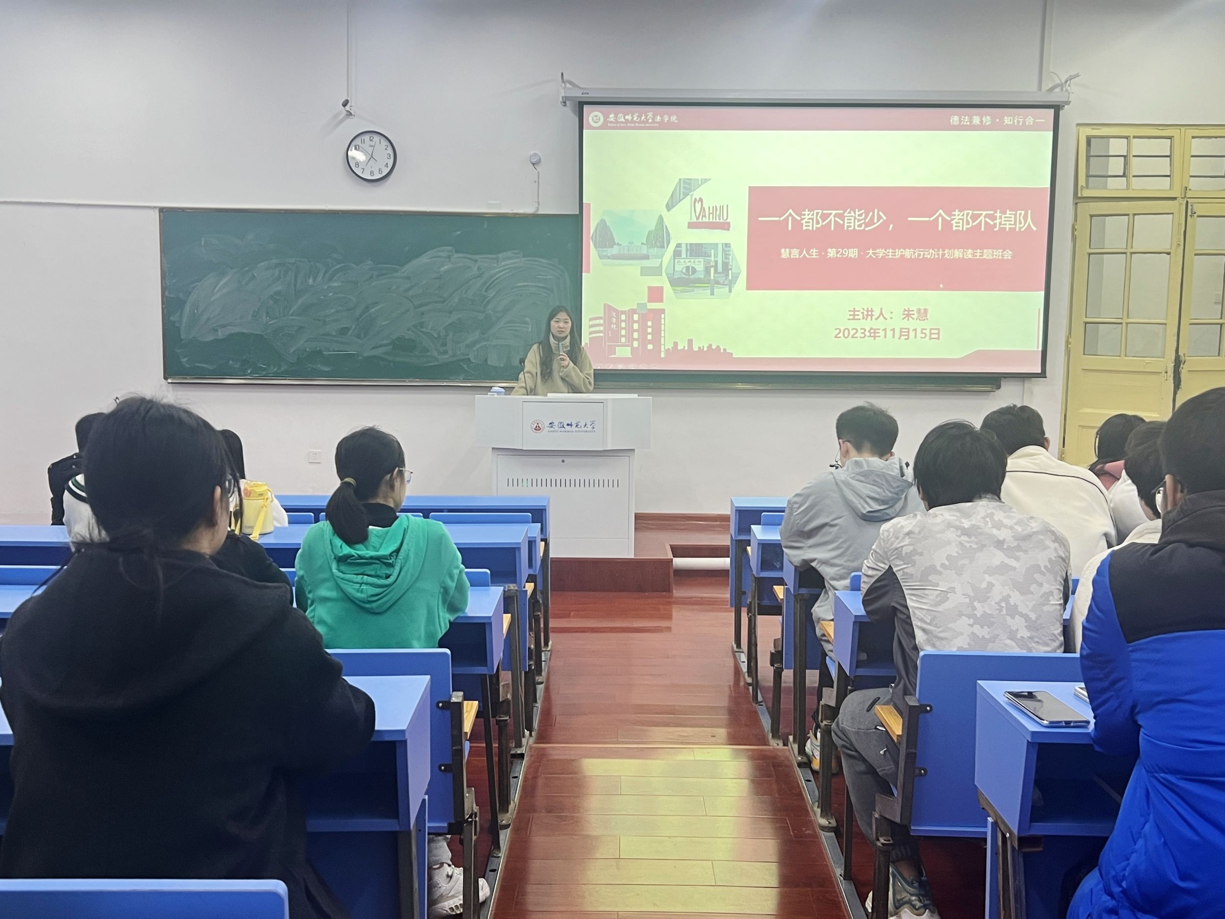 此次大学生护航行动计划解读主题班会旨在实现“一个也不能少,一个也不掉队”的目标,着力解决学生在学业成长发展和身心健康等方面的实际难题,培养担当时代复兴大任的时代新人。