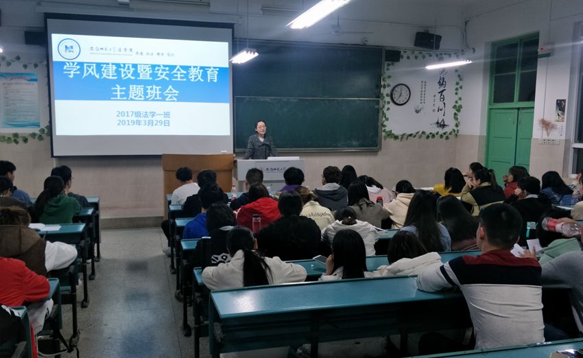 329日晚,2017级法学一班在行知楼2020304教室召开了学风建设安全教育主题班会,会议由辅导员贾文成主持召开。