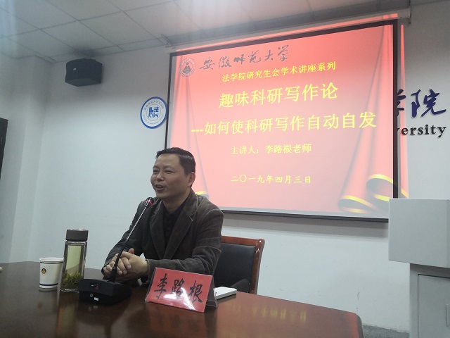 2019年4月3日晚,由36365线路检测中心研会主办的主题讲座在36365线路检测中心四楼会议室圆满完成,本次讲座我们有幸邀请到了民商法学与国际法学教工党支部副书记李路根老师为我们讲授“趣味科研写作论-如何使科研写作自动自发”。