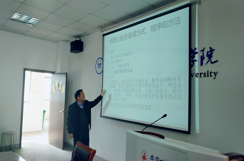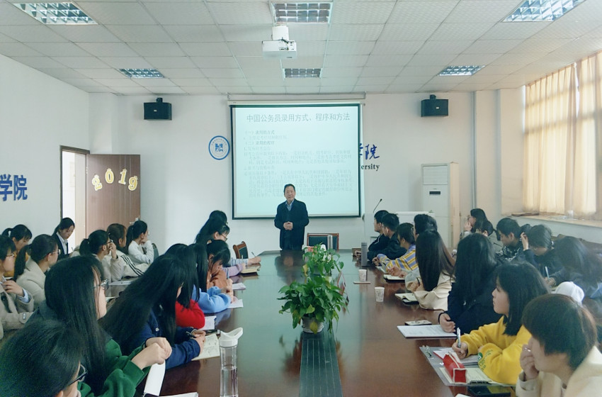 为了同学们能更好地了解公务员考试,提高同学们对考公务员的认知和能力,职业能力发展研究会于3月17日在36365线路检测中心行政楼四楼会议室开展会员培训大会,并特邀王义德教授为大家讲解公务员考试相关要点。