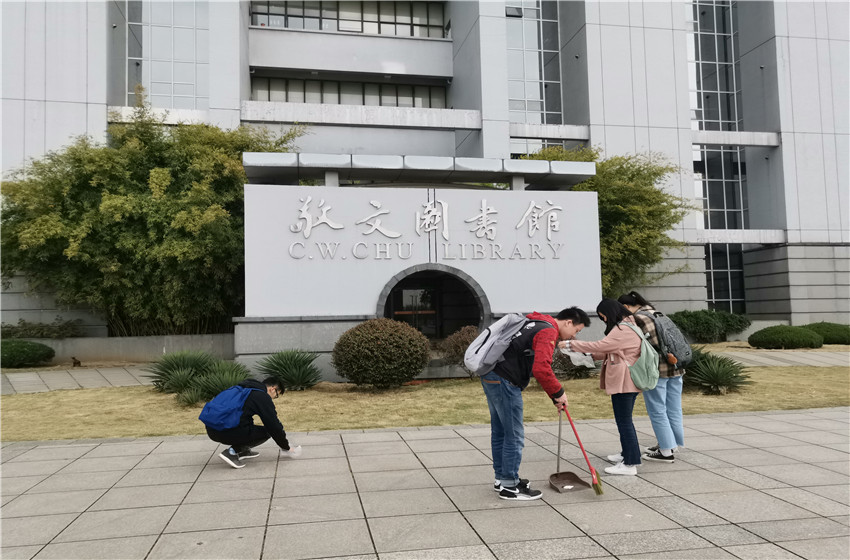 活动开始前,团支书喻雯婕带领全班同学学习了解了雷锋精神,倡导我们要在平时的学习生活之中弘扬雷锋精神,身体力行地去传递雷锋精神。此次活动以团小组为活动基本单位,同学们分别在各自团小组组长的带领下在校敬文图书馆的南、北两侧清理校园垃圾,帮助美化校园环境。此次活动过程中班级同学热情似火,积极主动进行清洁工作。部分女同学一改平时怕脏怕累之性格主动捡拾图书馆外侧草坪上的零碎垃圾,班级男同学更是一心一意进行清洁劳动,努力打扫路面垃圾。