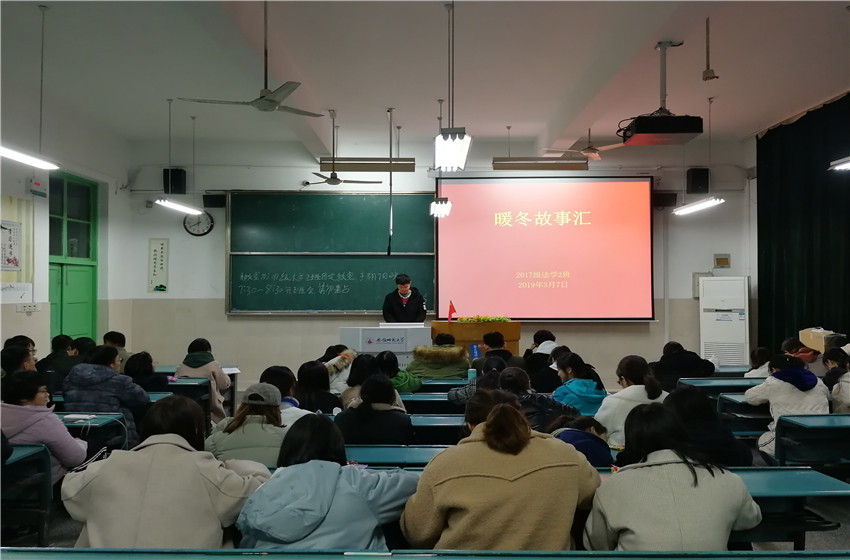 为深入学习宣传和贯彻习近平新时代中国特色社会主义思想,于实践中感受社会变迁,于分享交流中收获知识与成长。3月7日晚,17级法学2班在行知楼2020103教室召开“我的暖冬故事”分享交流活动,此次活动由团支书张万红主持,班级全体同学参与。