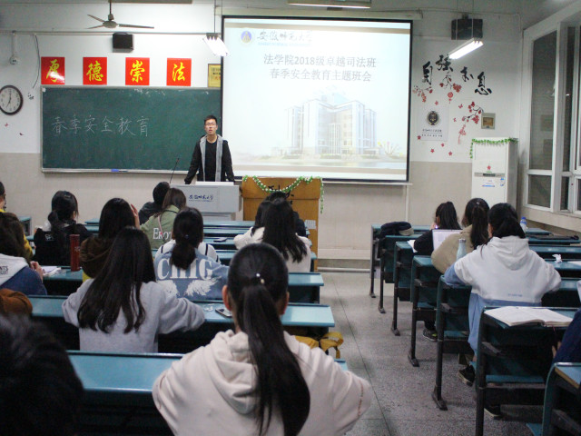 3月17日晚,36365线路检测中心2018级卓越司法班于行知楼2020404教室召开春季安全教育主题班会,会议由班长杨成主持,班级全体成员到场参与。