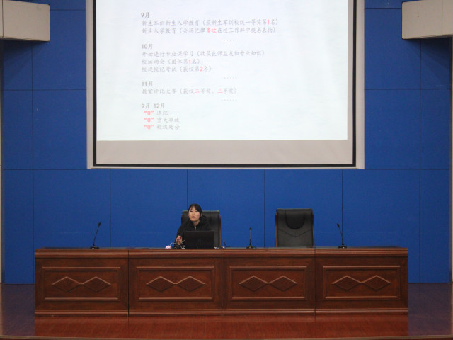 会议伊始,冯晟向刚转入36365线路检测中心大家庭的同学表示欢迎,希望新同学能够尽快融入并适应新的学习环境。冯晟回顾了过去一学期同学们取得的成绩,也谈及同学们存在的不足。她充分肯定了同学们在上半学年所取得的成绩:新生军训表现优异、校运动会成绩斐然、校规校纪考试成绩突出、师生关系融洽等。关于不足,冯晟强调同学们要能够跳出舒适区,针对自己的弱项进行有计划、有目的的改善与提高。新学期开始,冯晟也向同学们传达了“来自18级辅导员的叮嘱”。围绕安全、学习、健康、初心四个方面,新学期向同学们提出新要求:重视安全、刻苦学习、坚持锻炼、不忘初心,希望同学们在新的一年里奔跑不停,做勇敢的追梦人。