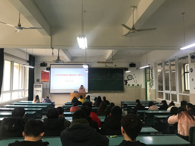 2月27日下午两点,2015级行政管理专业在行知楼2020104教室开展考研复试与就业指导主题班会,此次班会由辅导员瞿津津主持,全体行管同学参加。