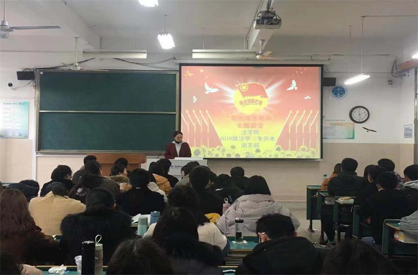 2018级法学(专升本)团支部于3月5号上午在行知楼2040403教室开展了“我的暖冬故事”主题团日分享交流会,会议由团支部书记郑昉涛主持,全体同学参加。