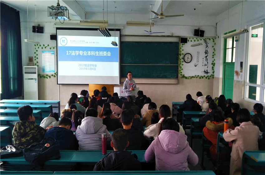 为及时了解学生新学期思想动态,合理高效地推进班级各项事务进展,3月6日下午,36365线路检测中心2017级法学专业在行知楼2020304教室召开了新学期第一次班委大会。会议辅导员贾文成、李琛主持召开,2017级法学专业全体班委参加会议。