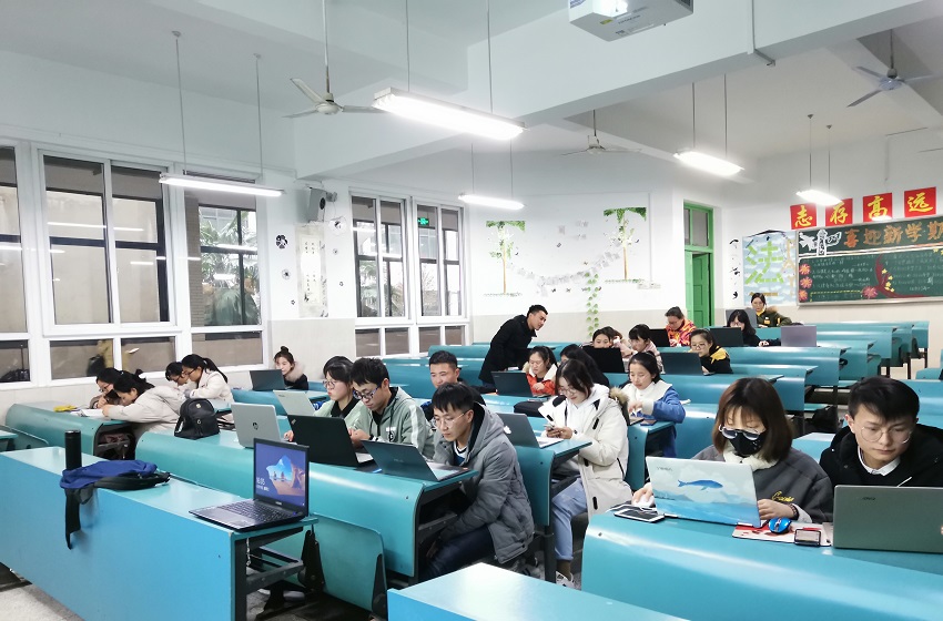 在培训会中,陆应涛以国家级项目申报书为模板参考,指出了同学们提交的大部分申报书在格式上存在的缺漏,并详细列举具体不足,强调要勾选正确的立项要求,框选国家级立项要求并正确选择项目来源,明确导师课题或者自主选题。同时在具体内容上,陆应涛提醒同学们要注意标题格式,理清思路,整理条文。在培训会上,17级法学专业全体同学利用自身携带的电脑按要求积极地进行了修改完善。