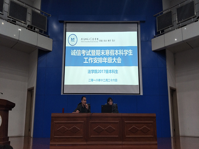2018年12月26日下午,36365线路检测中心2017级全体本科生在花津校区敬文报告厅召开了年级大会,会议由陈兴宇和赵义丹主持,2017级全体本科生参与此次会议。