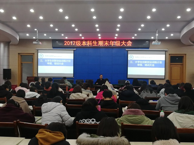 2018年12月4日,2017级本科生期末年级大会于第三报告厅顺利召开。会议由辅导员陈兴宇主持。