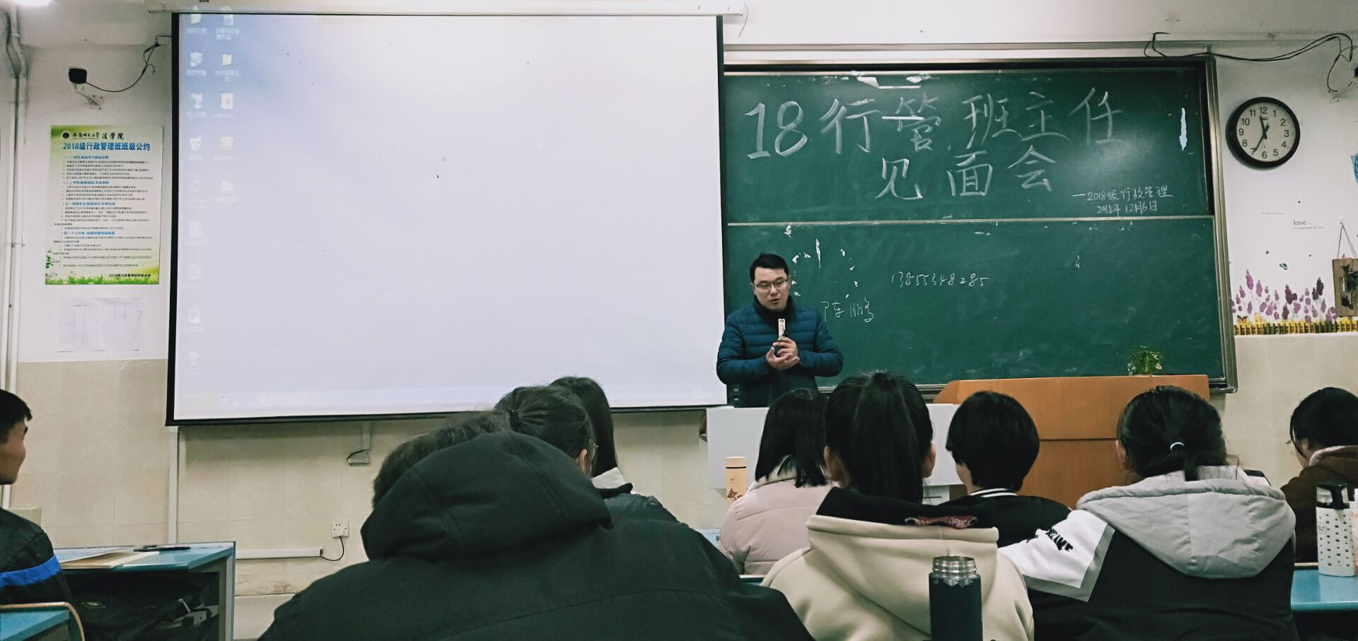 12月6日,2018级行政管理专业在行知楼2010304召开了班主任见面会,本次见面会邀请了班主任陈鹏,班级全体成员参加。
