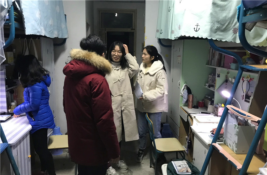 12月10日晚上,15法学、16行管辅导员桂彬带领班委、学生党员,前往各班级寝室,进行冬季用电安全大检查。