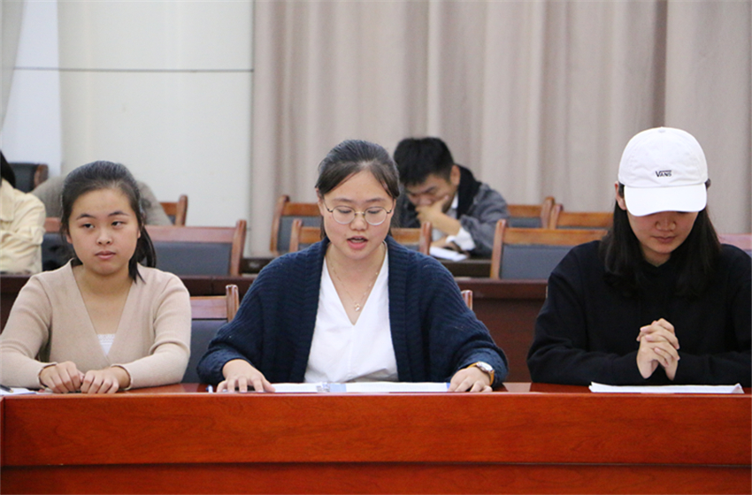 2017级法学一班团支书张鹏从思想建设、团支部管理制度、特色团建活动三个方面汇报了班级团支部的建设情况,并指出特色团建活动对调动团支部成员积极性以及推动团支部建设的重要作用;强调要制定完整的团支部管理制度,从严治团,贯彻落实“三会两制一课”制度。2017级卓越司法班团支书喻雯婕对班级团支部建设发表见解,指出微博和微信公众号是推动班级团支部建设的有效平台,并强调创新是团建活动富有生机与活力的重要源泉。张沥丹对会议进行总结发言,她指出文件规范作为团支书的基本工作要求应落到实处,号召团支部成员积极创新,加强与团委的沟通交流。