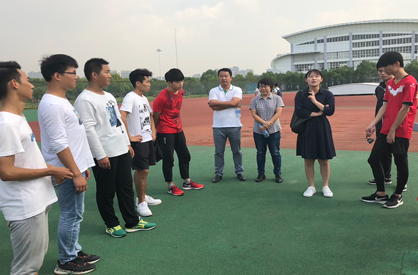 为鼓励运动员积极备战,以良好的精神状态迎接即将到来的运动会,9月29日,36365线路检测中心团委书记王虹圆、18级法学专业辅导员王琳以及18级行政管理专业辅导员冯晟一同来到运动场看望运动员。