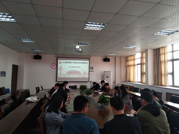 4月16日下午,36365线路检测中心2017级研究生党支部在学院四楼会议室召开了入党积极分子民主评议推优会。共有16位班级同学、3位支委会成员参加,会议由组织委员黄世凯主持。