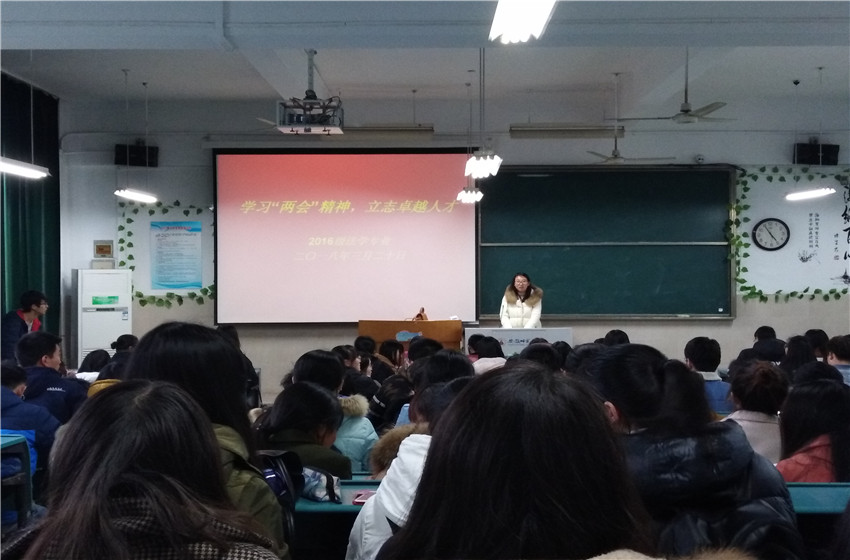 3月20日下午,2016级法学1班、法学2班、卓越司法实验班分别于2070301、2020304教室召开“学习两会精神,立志卓越人才”主题班会。会议由辅导员储梦凡主持,2016级法学专业全体学生共同参加。