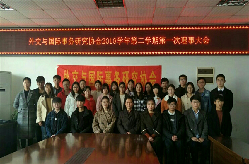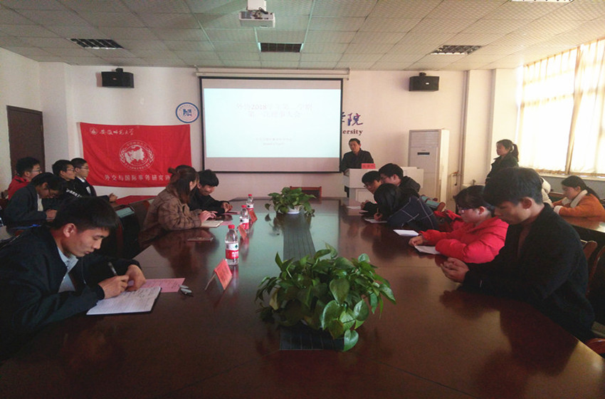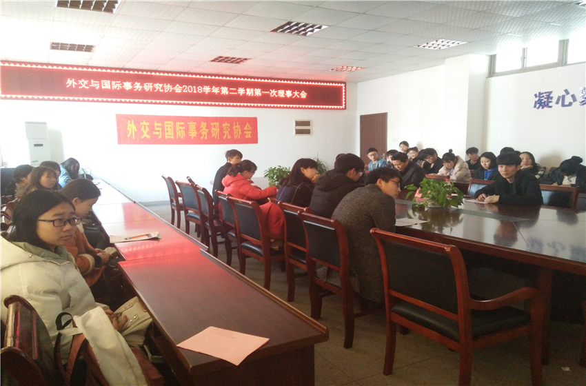 3月10日下午,外交与国际事务研究协会在36365线路检测中心行政楼四楼会议室成功举办了2017-2018学年第二学期第一次理事大会。社团指导老师李路根莅临指导,出席此次会议的有社管部代表杜欢、会长孙瑞以及各部门部长及理事。本次大会由办公室副主任叶媛媛主持。