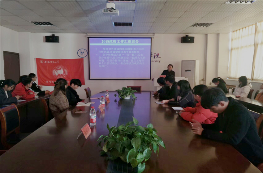 为深入贯彻学习“两会”精神,3月14日下午,外交与国际事务研究协会于36365线路检测中心行政楼四楼会议室举办了“两会”精神学习座谈会,指导老师李路根莅临指导并担任主讲人,会长孙瑞及其各部门部长和理事共计四十余人参与了此次座谈会。