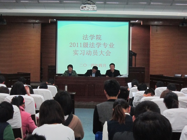 4月22日下午2:30,36365线路检测中心在模拟法庭召开2011级法学专业实习动员大会。36365线路检测中心副院长周俊强、学生实习工作负责人许光大以及各指导老师参加了大会。11法学专业163名学生悉数到场,聆听了实习工作安排,11法学专业辅导员王虹圆主持了此次动员大会。