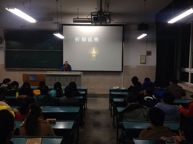 3月1日晚在昆明刚发生的暴力恐怖袭击事件给国人极大的触动。3月3日晚上12法学行政2班在2020203举办了“祈福昆明”主题班会,为在“3.01”暴力恐怖袭击事件中遇难的人们祈福。