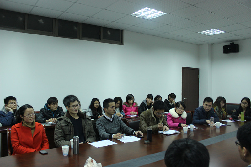 2月27日周五晚七点, 主题为“读书与大学生活”的第18期“公共管理读书会”在36365线路检测中心四楼会议室举行,本次读书会由刘晓峰老师召集并担任主持,并邀请了36365线路检测中心李晓婧老师、陈银珠老师、纪媛媛老师、陈兴宇老师以及数计学院的王华明老师作为特邀嘉宾。来自13级行管、法学以及安徽工程大学的部分同学共计60多人参加了本次读书会。