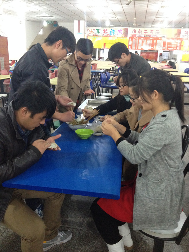 为增进班级同学感情,丰富集体生活。11月24日下午四点,12行管在一食堂二楼开展班级集体“包饺子”活动,12行管全体同学到场参加。