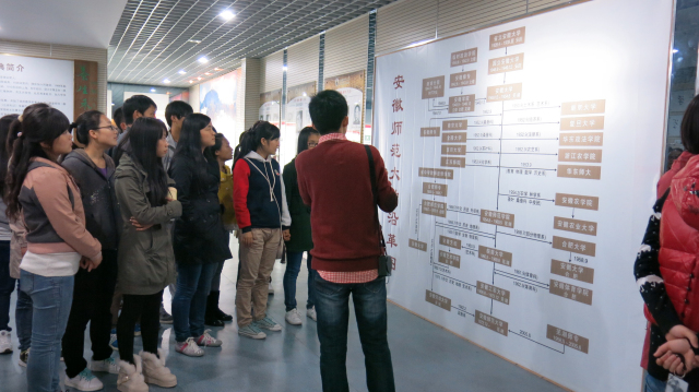 伴着徐徐秋风,学员们在工作人员的引领下陆续进入了校史馆。图片、实物、模型、雕塑……向我们诉说着我校曲折而又雄伟的发展历程。校史馆通过对师大历史足迹的记录与再现,多角度、全方位地展现了师大自建校以来八十余载的办学历程与光辉历史。配合现场两位解说员生动详实地讲解,进一步让学员们体会到了师大厚重的文化底蕴以及丰富的文化内涵。