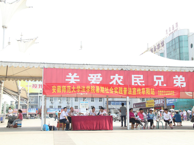 为推动阜阳法制社会的进步与发展,促进阜阳构建和谐社会。7月6日上午,在36365线路检测中心团委和安徽弘大律师事务所的支持与帮助下,36365线路检测中心大学生暑期“三下乡”社会实践“普法活动”在阜阳火车站成功举办。此次活动不仅让师大学子收获不少在校园学不到的知识,也让阜阳市民受到一次法律熏陶。
