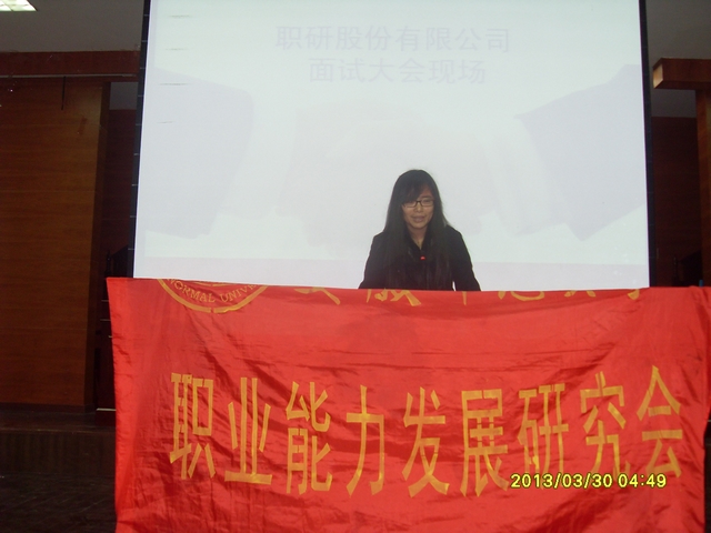 3297点,职研会在模拟法庭举办“麻辣面试”活动,模拟求职面试现场,以提高面试应对能力。