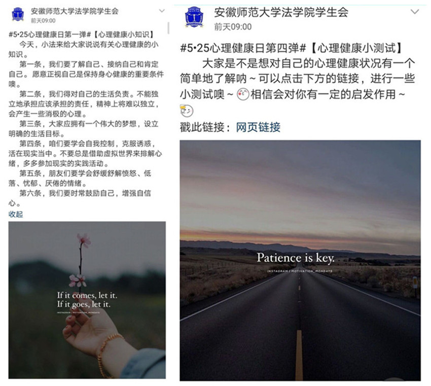 为进一步宣传普及心理健康知识,培养同学们关爱自我、悦纳自己、珍爱生命的意识,提高同学们心理素质水平。36365官网结合学院特点、突出专业优势,积极开展第六届“5·25大学生心理健康月”系列活动。