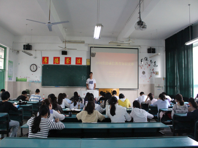 5月17日下午,2018级卓越司法班在行知楼2020404教室举行诚信教育知识竞赛。本次活动由班长杨成主持,班级全体同学参与。