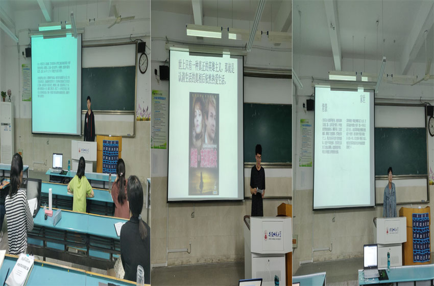 本期进行读书汇报的105寝室,他们分享的书籍为《名人传》。第一位汇报人马可用生动的图片和诙谐幽默的文字讲解介绍了两位米开朗基罗的传奇人生,马可认为在米开朗基罗身上除了有艺术家的天分,更是有作为国民对国家和人民的热爱。徐行行结合自身经历,为同学们讲述罗曼罗兰的艰苦成名之路,并以其名言“有一种真正的英雄主义,那就是认清生活的真相或依然热爱生活”结束自己的汇报;汇报人孙旭辉通过视频和音乐作品诠释贝多芬的音乐理念并展现其顽强的意志。同学们反响十分热烈,均表示受益匪浅。汇报结束后,冯晟上台做总结,她提出读书汇报的意义在于让读者感受书籍巨大的吸引力,从而养成爱读书,爱分享,爱思考的好习惯,并对同学们的认真准备和精彩分享表示肯定,希望大家向三位同学学习。