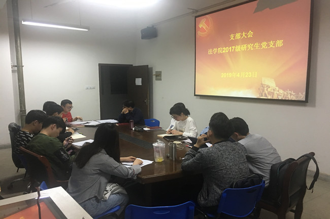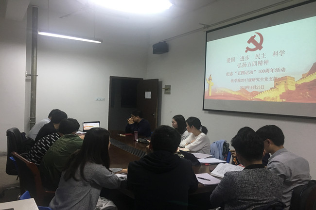4月23日晚上,2017级研究生党支部在36365线路检测中心行政楼5楼公共管理教研室,召开了支部大会并积极学习了“爱国 进步 民主 科学”弘扬五四精神——纪念“五四运动”100周年活动。