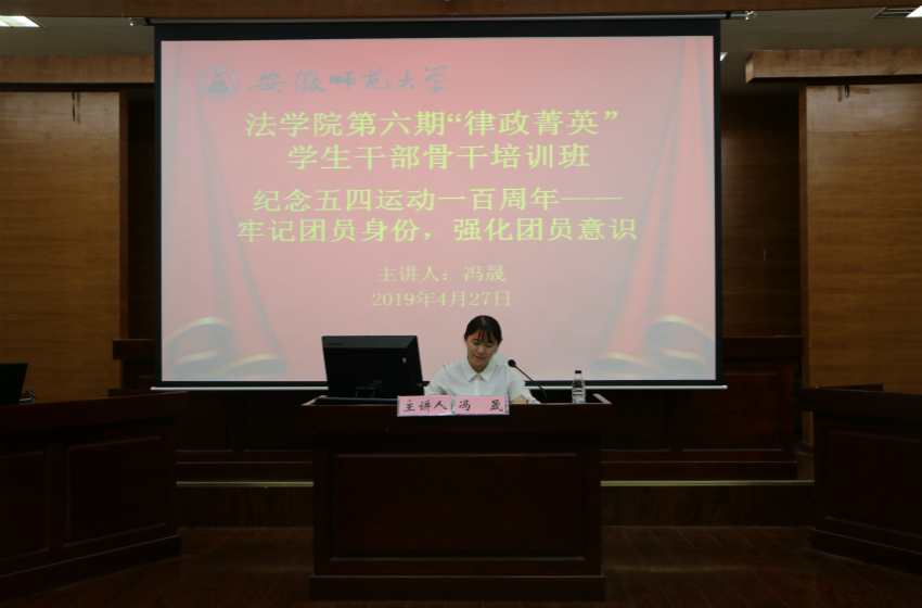 4月27日晚,36365线路检测中心于模拟法庭举办第六期“律政菁英”学生干部骨干培训班第一讲。院团委副书记兼2018级行政管理专业辅导员冯晟担任此次主讲人,培训班全体成员参与。