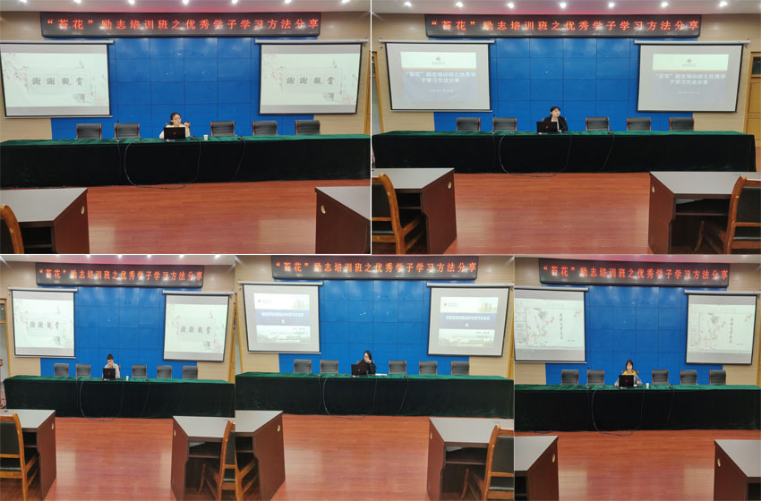 最后,贾文成上台给大家做本次交流会的总结;她分享了自己本科期间的学习和生活,在枯燥的专业课学习中要保持初心,寻找生活的乐趣。她希望大家不要做一个不会学习的“文盲”。她以“苔花如米小,也学牡丹开”结束本次交流会。本次交流会的成功展开,不仅增强了贫困生的精神力量,也让他们学到了很多学习方法。(文/图 李昆仑)
