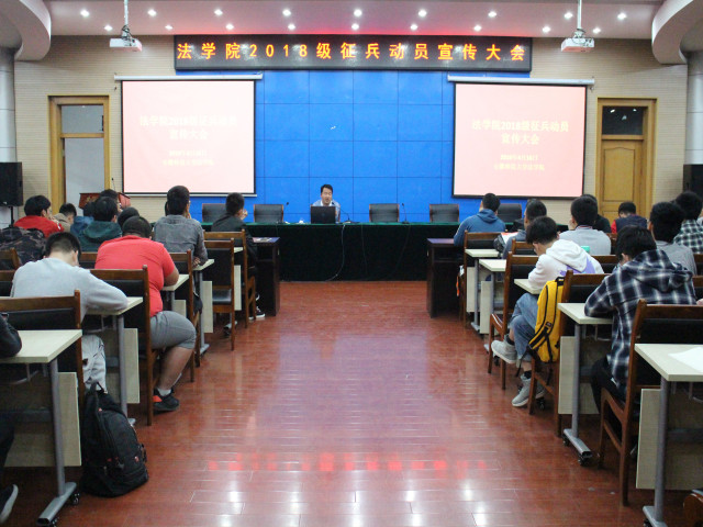 4月16日晚,36365线路检测中心2018级在第三报告厅召开征兵动员宣传大会。会议由辅导员王琳主持,2018级全体男生到场参会。