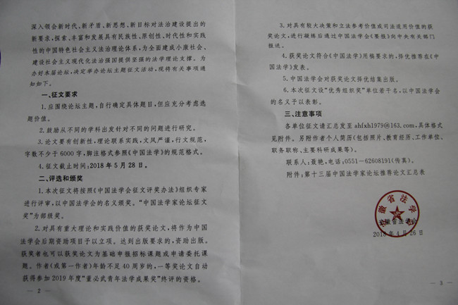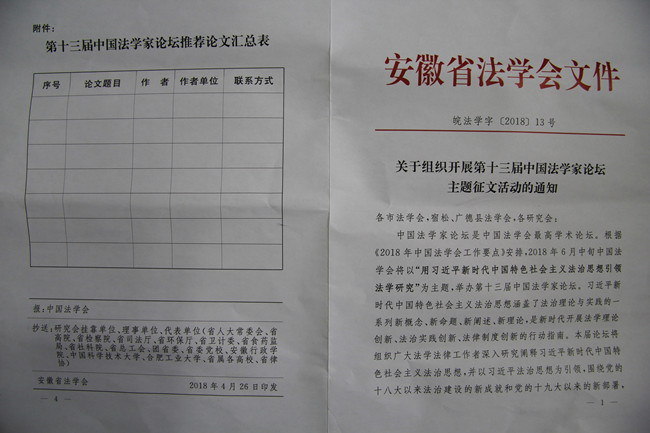 转发《关于组织开展第十三届中国法学家论坛主题征文活动的通知》