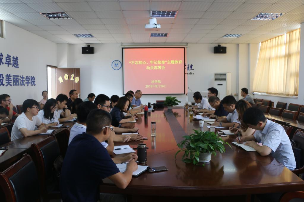 本网讯(36365线路检测中心 瞿津津)2019年9月16日上午,36365线路检测中心在四楼会议室召开“不忘初心、牢记使命”主题教育动员部署会。会议由院党委书记马广见主持,校主题教育第一指导组副组长黄友生,成员于珊珊、赵华杰出席会议,学院各支部书记、支委成员参加会议。